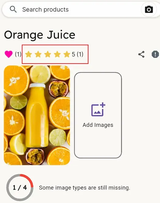 Once you added or found the item you want to review, just tap the star icon.