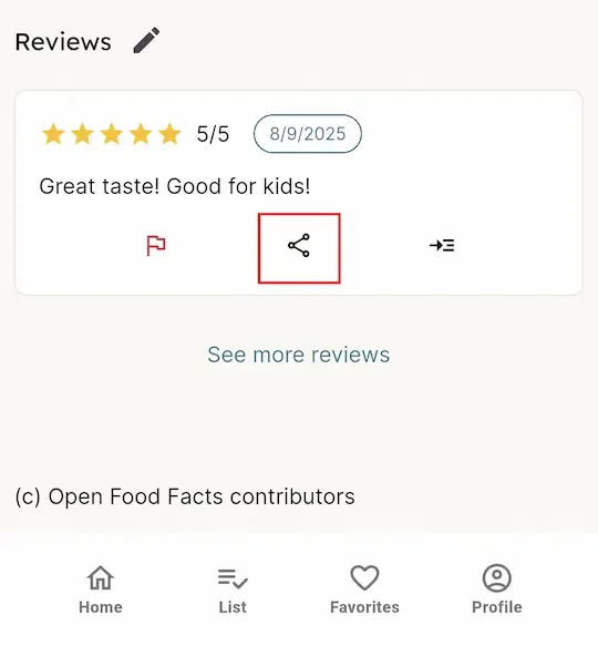 You can share a specific review by tapping the share icon.